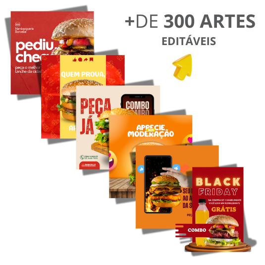 Acesse o Pack de Templates de Artes Lucrativas para Hamburgueria e escolha a Arte que mais gostou. Tudo mastigado e sem enrolação.